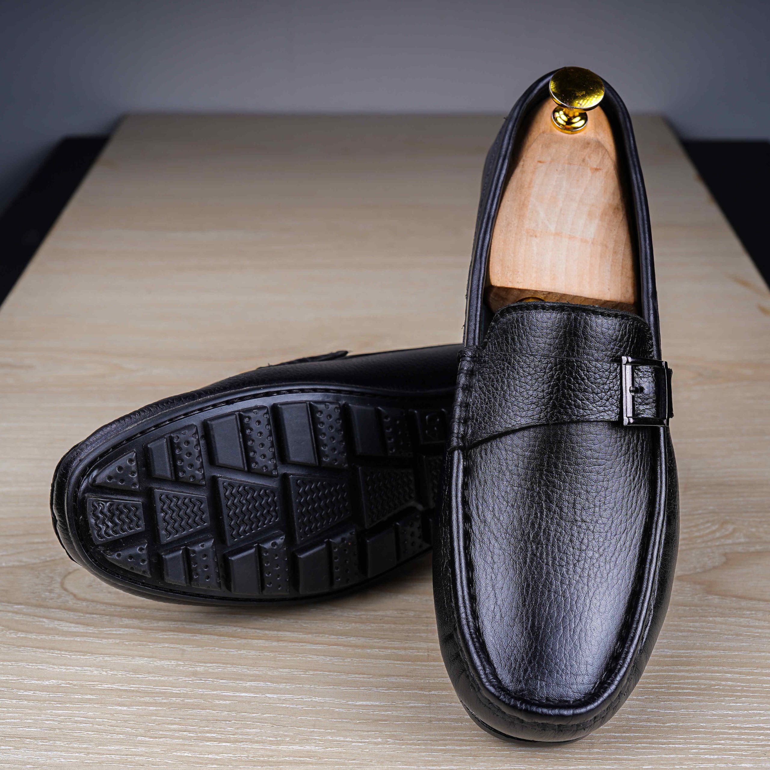 Step up your style game with these premium black leather loafers, designed for the modern gentleman who values both elegance and ease. Crafted from high-quality genuine leather, these loafers feature a textured finish and a sleek metal buckle detail, adding a touch of sophistication to any outfit.